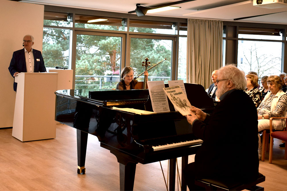 Das musikalische Duo durften wir schon des Öfteren im Wohnpark begrüßen; Michael Erhard ist erfahrener Pianist, Komponist und Dirigent, der viele Jahre die Schauspielmusik am Staatstheater Darmstadt geleitet hat. Angela Elsäßer ist eine vielseitige Cellistin mit internationaler Ausbildung und langjähriger Orchestererfahrung.